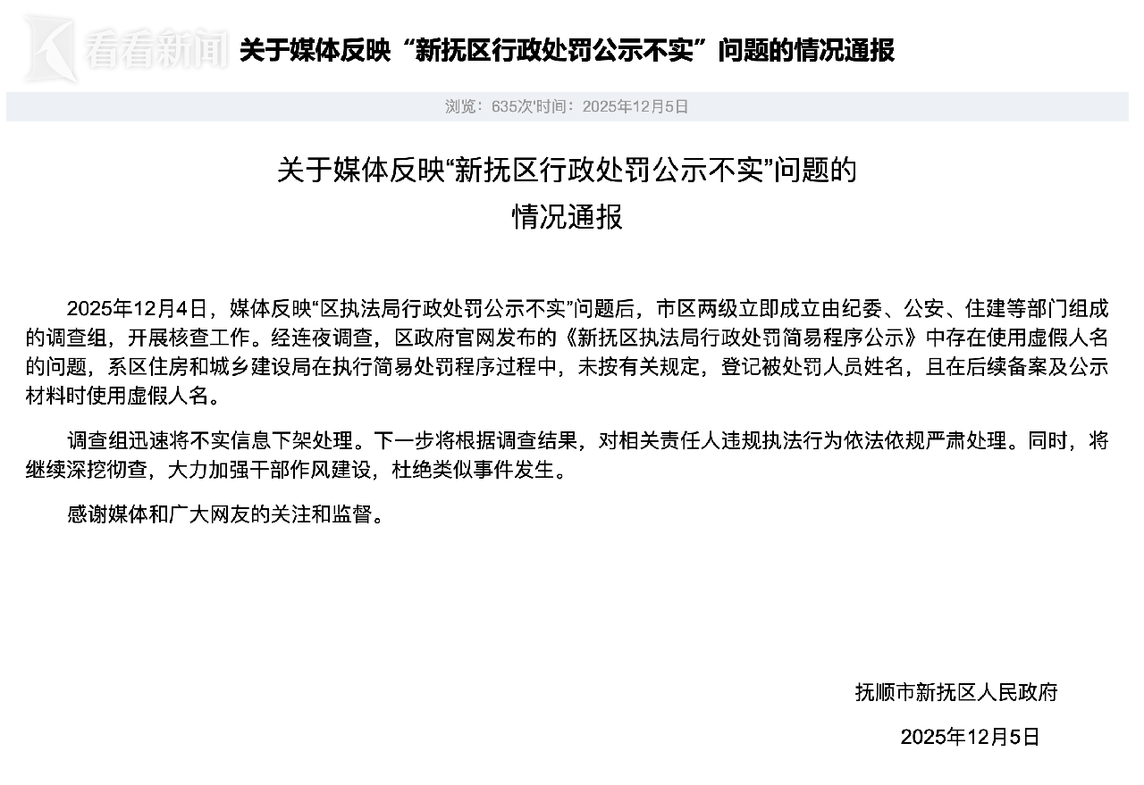 这些假账号也不尊重人们的智商!鹿晗、孙俪、李现、金晨……恐怕连大明星自己都没有想到他们会在一起一张“捂路行动”的票。还有很多受罚者的名字与名人(吴龙、林志、苏鹏、林心如)仅仅一字之差,真是可笑!今天下午(12月5日),涉事抚顺市新抚区承认确实使用了假名,将对责任人进行处理。虽然态度看似诚恳,但却巧妙地回避了公众真正关心的主要问题——造假的原因是什么?钱去哪儿了?是管理懒惰、敷衍,还是故意错记账目?此外,网友顺着线索,又找到了一份名单木拉给当地执法局。 “丁一”、“李一”、“陈一”、“孙一”等同名人员50人,均罚款50元。 wh总共2500元左右也是个谜。看来,虚构的精致叙述并非偶然。所以,面对如此一系列荒唐的账目,当地政府仅仅连夜撤回相关文件并迅速承认“名字已被腐蚀”是不够的。公众有权要求彻底调查、真实核算——有罚款吗?如果有的话,它流向哪里?如果不是,那么持续欺诈的动机是什么?这样我们就可以防止因“真实反应”而失去可信度。编辑:杨世杰 编辑:付群